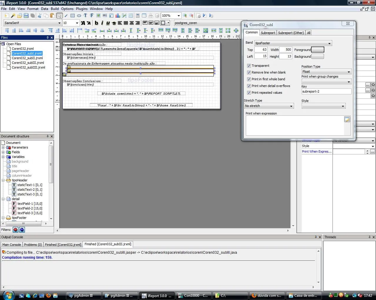 tenho um relatório no ireport que na metade da página para baixo eu chamo um subrelatório, de tamanho indefinido de linhas