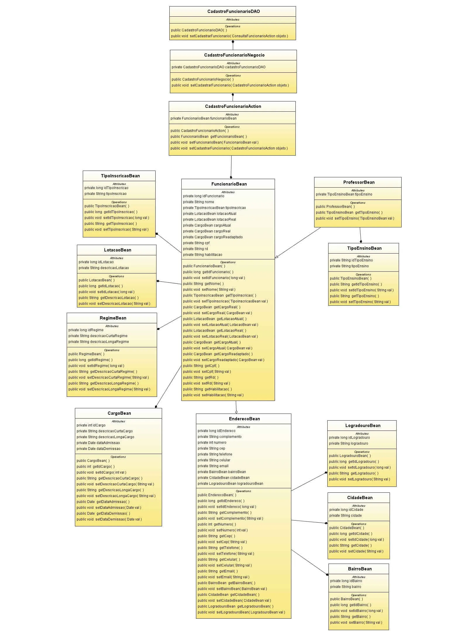 Olá, em meu projeto tenho uma classe Funcionario, que é composta por diversas classes que por sua vez são compostas ou agregadas por outras classes.