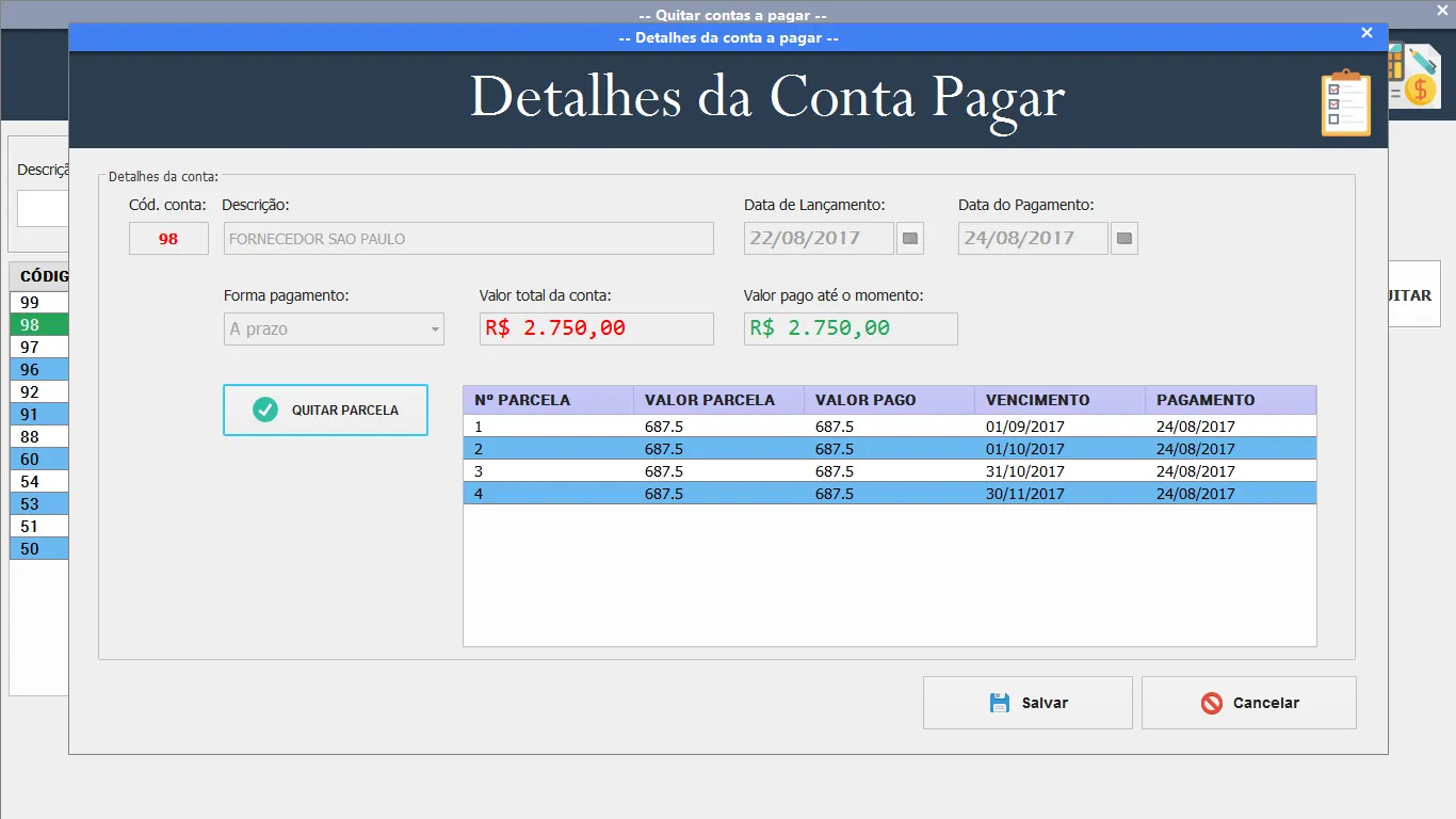 Gostaria de deixar os valores formatados “valor parcela” e “valor pago”, a imagem abaixo está sem.