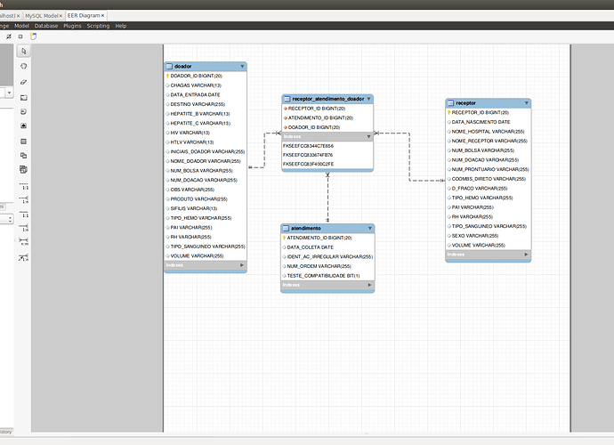 Tenho 3 entidades: DOADOR, RECEPTOR e ATENDIMENTO.