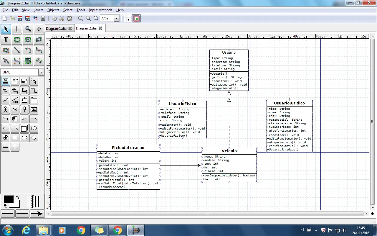 Pessoal só uma duvida. Estou montanto um sistema OO de uma locadora de veículos. As classes que eu tenho são: usuario (classe abstrata com metodos e atributos comuns), usuario fisico, usuario juridico (com suas proprias implementações e métodos específicos).