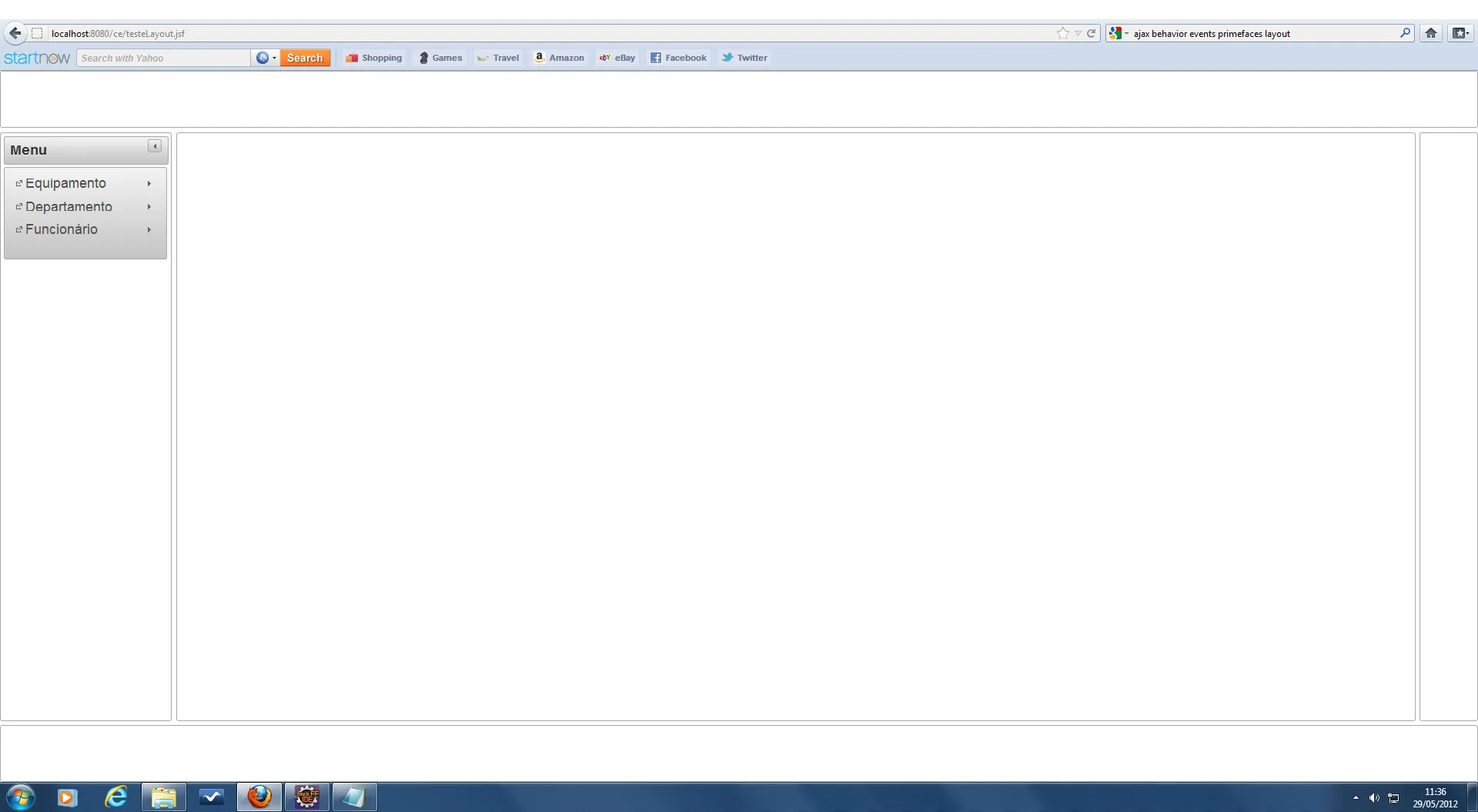<!DOCTYPE html PUBLIC "-//W3C//DTD XHTML 1.0 Transitional//EN" "http://www.w3.org/TR/xhtml1/DTD/xhtml1-transitional.dtd"><htmlxmlns="http://www.w3.org/1999/xhtml"xmlns:ui="http://java.sun.com/jsf/facelets"xmlns:h="http://java.sun.com/jsf/html"xmlns:f="http://java.sun.com/jsf/core"xmlns:p="http://primefaces.org/ui"><h:head><title>CE - Controle de Equipamentos</title></h:head><h:body><p:layoutfullPage="true"><p:layoutUnitposition="north"size="75"resizable="true"><ui:insertname="header"></ui:insert></p:layoutUnit><p:layoutUnitposition="west"width="225"header="Menu"collapsible="true"resizable="true"><h:form><p:slideMenustyle="width: 200px; height: 110px;"><p:submenulabel="Equipamento"icon="ui-icon ui-icon-extlink"><p:menuitemvalue="Novo"icon="ui-icon ui-icon-disk"action="#{equipamentoMBean.novo()}"target="center"/><p:menuitemvalue="Lista"icon="ui-icon ui-icon-arrowrefresh-1-w"action="#{equipamentoMBean.listar()}"/></p:submenu><p:submenulabel="Departamento"icon="ui-icon ui-icon-extlink"><p:menuitemvalue="Novo"icon="ui-icon ui-icon-disk"action="#{departamentoMBean.novo()}"/><p:menuitemvalue="Lista"icon="ui-icon ui-icon-arrowrefresh-1-w"action="#{departamentoMBean.listar()}"/></p:submenu><p:submenulabel="Funcionário"icon="ui-icon ui-icon-extlink"><p:menuitemvalue="Novo"icon="ui-icon ui-icon-disk"action="#{funcionarioMBean.novo()}"/><p:menuitemvalue="Lista"icon="ui-icon ui-icon-arrowrefresh-1-w"action="#{funcionarioMBean.listar()}"/></p:submenu></p:slideMenu></h:form></p:layoutUnit><p:layoutUnitposition="center"><ui:insertname="centro"></ui:insert></p:layoutUnit><p:layoutUnitposition="east"size="75"resizable="true"><ui:insertname="east"></ui:insert></p:layoutUnit><p:layoutUnitposition="south"size="75"resizable="true"><ui:insertname="south"></ui:insert></p:layoutUnit></p:layout></h:body></html>