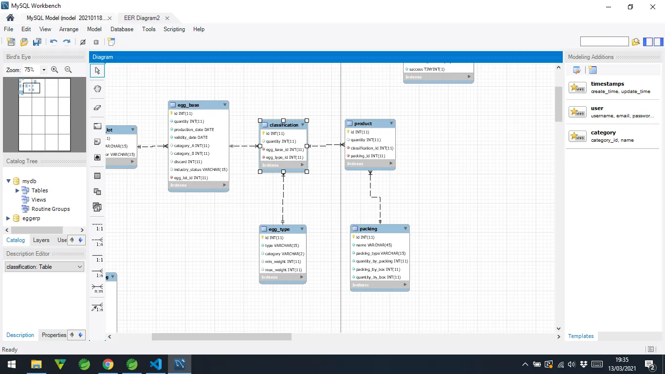 Quando uma matéria prima chega à industria (EggBase) o funcionário dará entrada com a quantidade, lote, data de produção e validade. Essa matéria prima sofrerá a classificação por tipo (EggType): tipo jumbo, extra, branco, médio, pequeno. Depois essas classificações sofrerão a embalagem por Produto (packing), onde os ovos podem ser embalados em estojo 6 ou 12 unidades, cartelas de 12, 20 ou 30 unidades e etc.