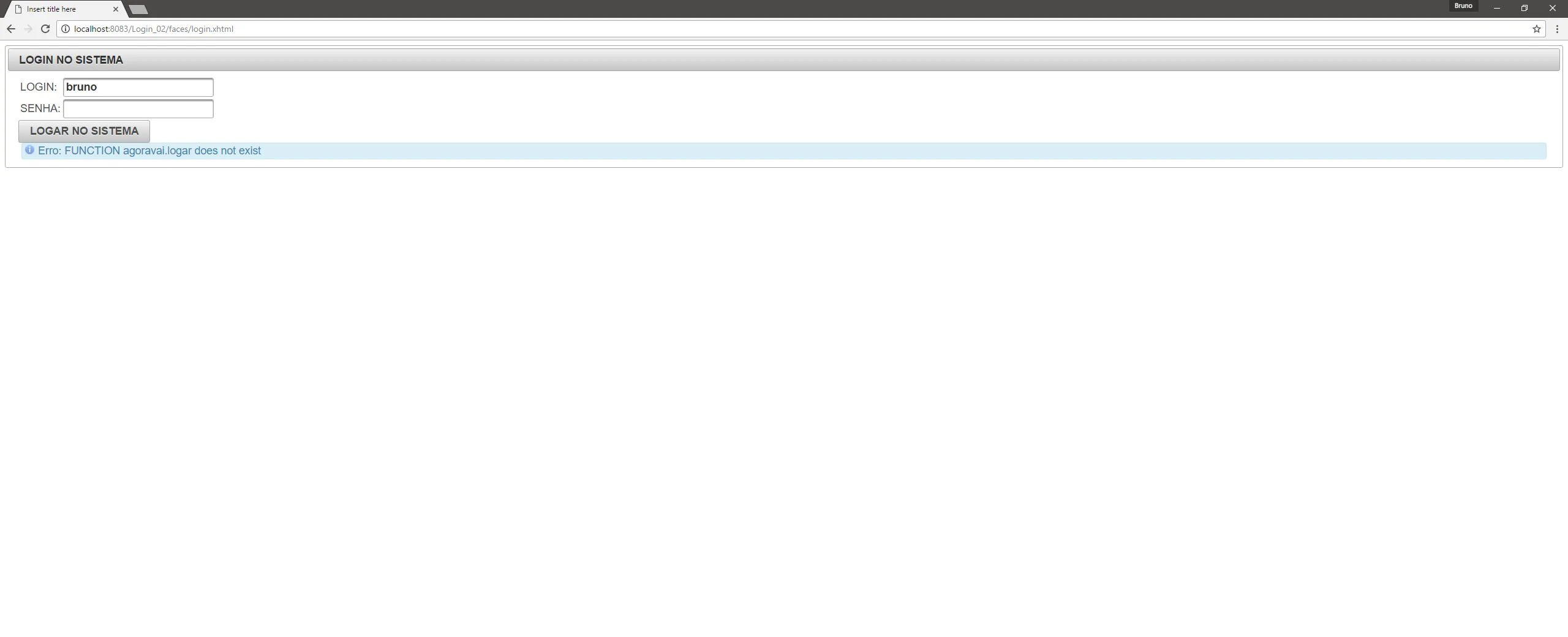 FacesContext.getCurrentInstance().addMessage("formlogin", new FacesMessage("Erro: " + e.getMessage()));