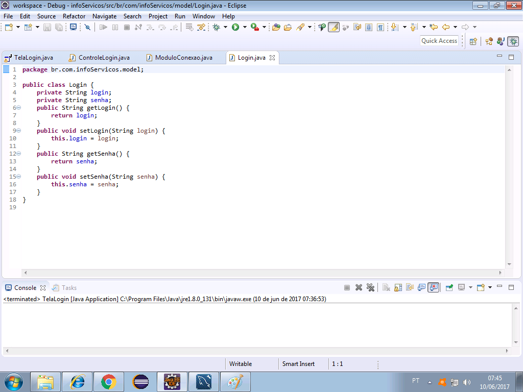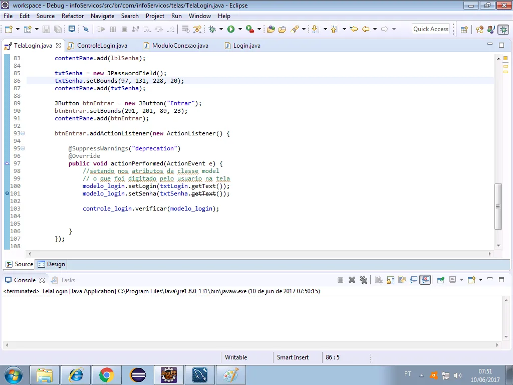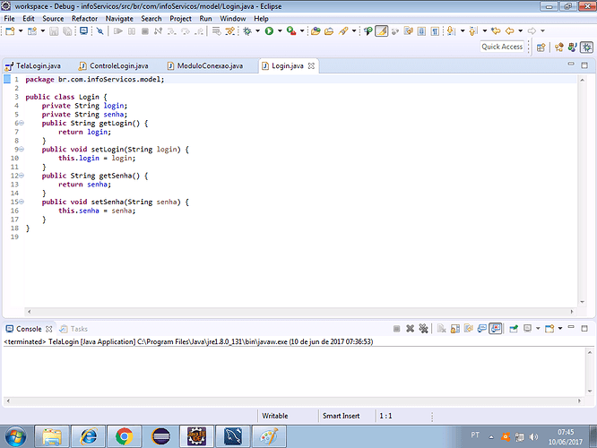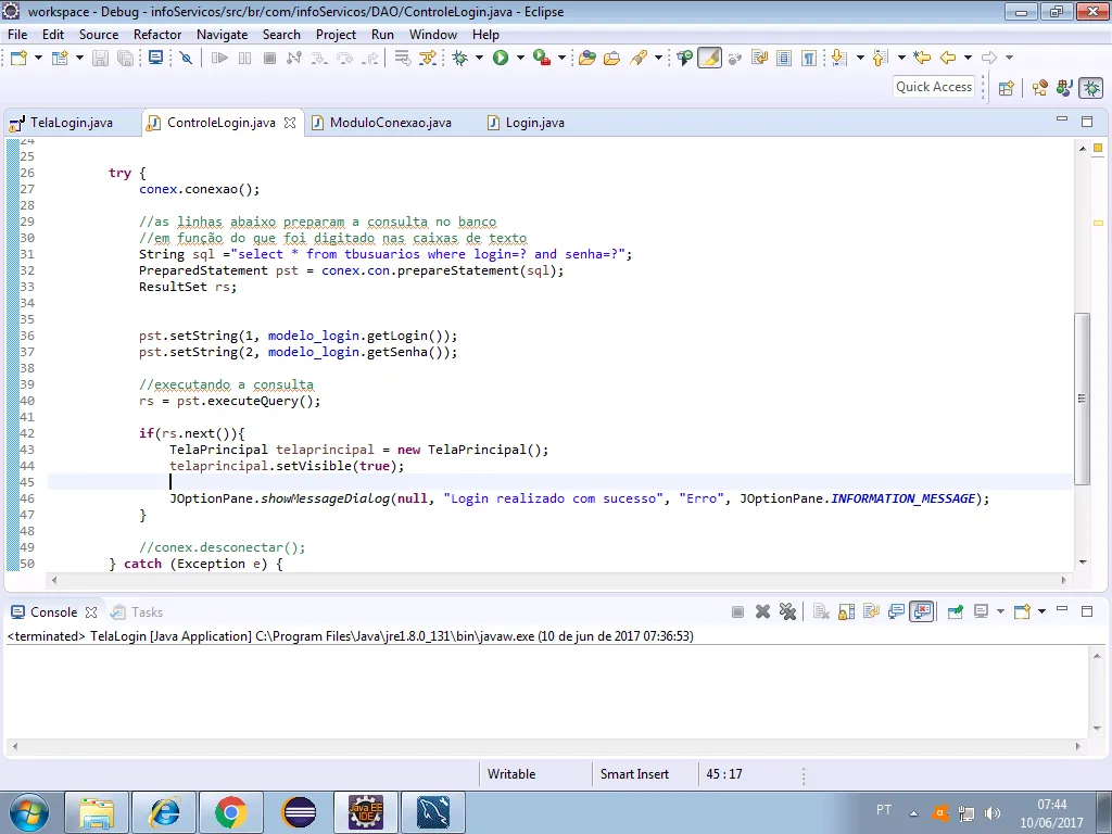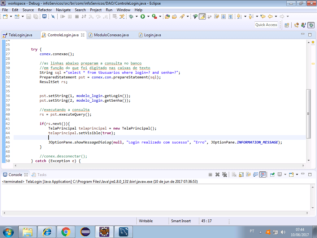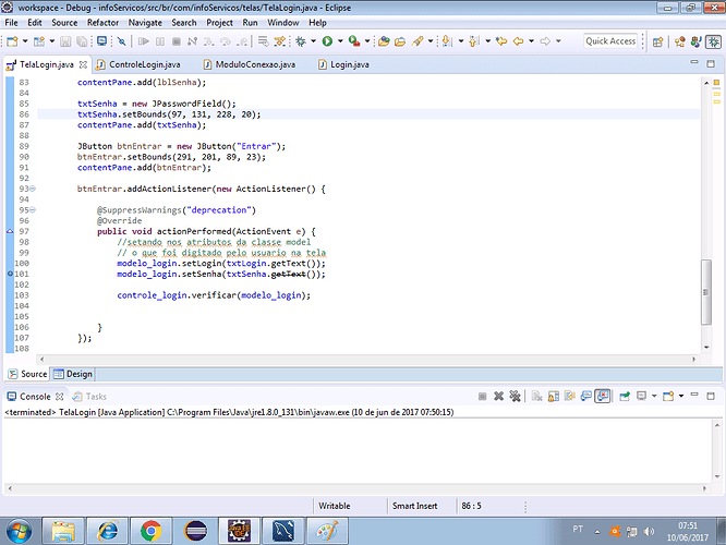faz um teste, classe ControleLogin linha 46, coloca lá o // pra desconsiderar ela no código,