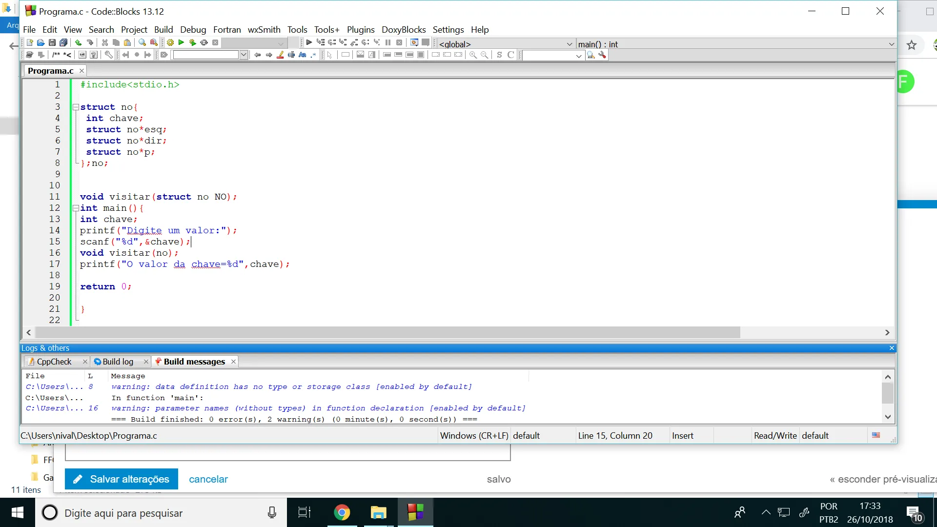 Essa função que lida com o No esta esquisita. Vc não usa void solto assim.