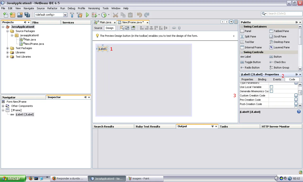 boa Tarde a todos eu estou tendo uma duvida como faço para encontrar na parte de propriedade do netbeans custom creatio code eu estou usando o netbeans6.5 release1 . se alguém me pode ajudar fico muito agradecido