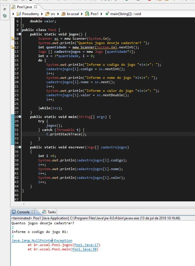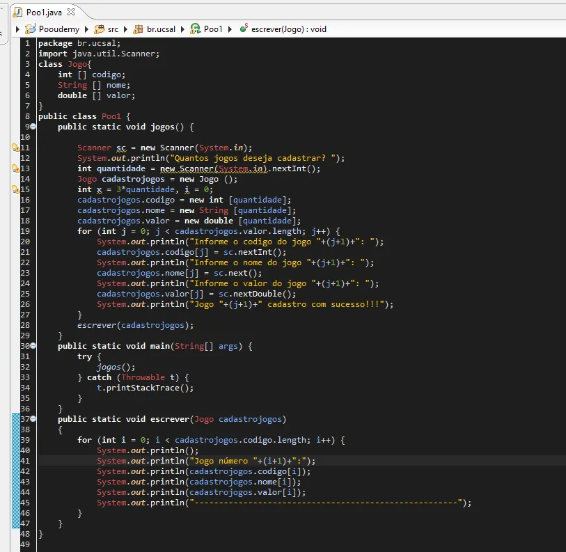 Jogo cadastrojogos[] = new Jogo [quantidade*3];