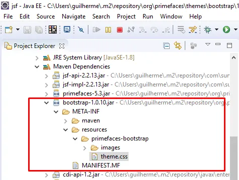 Estou vendo que dentro do bootstrap-1.0.10.jar, existe o arquivo theme.css. Para alterar basta fazer alteração do mesmo ?