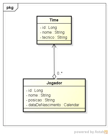 Já que o Jogador possui o Time, eu fiz uma agregação (TEM-UM) entre eles.