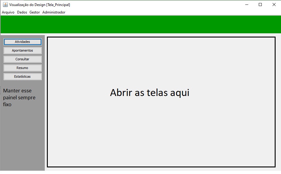 Tenho uma dúvida quanto a abertura de telas, possuo um form principal onde nele contem dois jpanel, que gostaria que ao clicar nos menus o mesmo permanecesse fixo e as telas abrissem ao lado. Vou mandar um print para facilitar o entendimento.