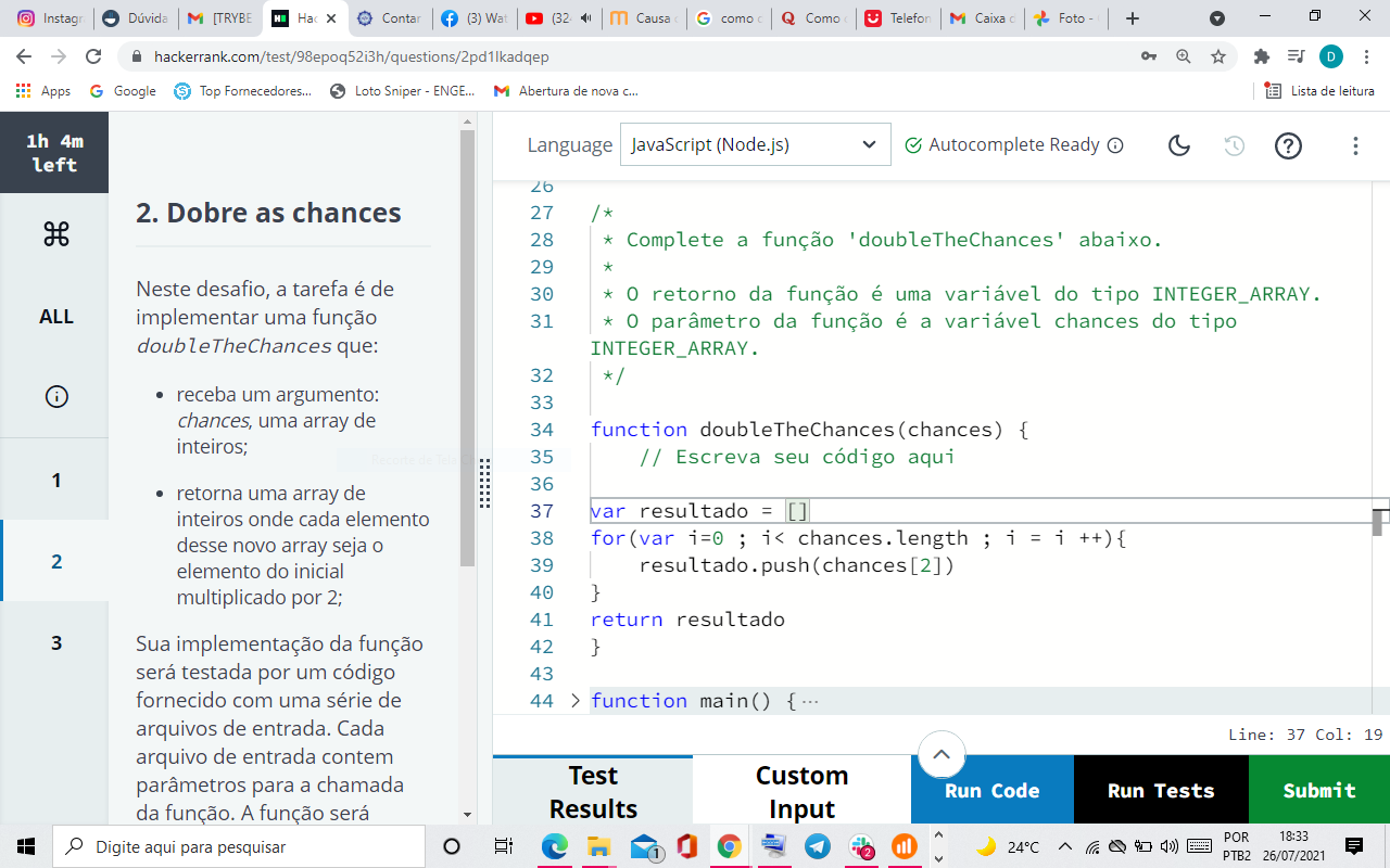 Se chances está vindo por parâmetro, vc não precisa declarar ele novamente. Remova essa linha: