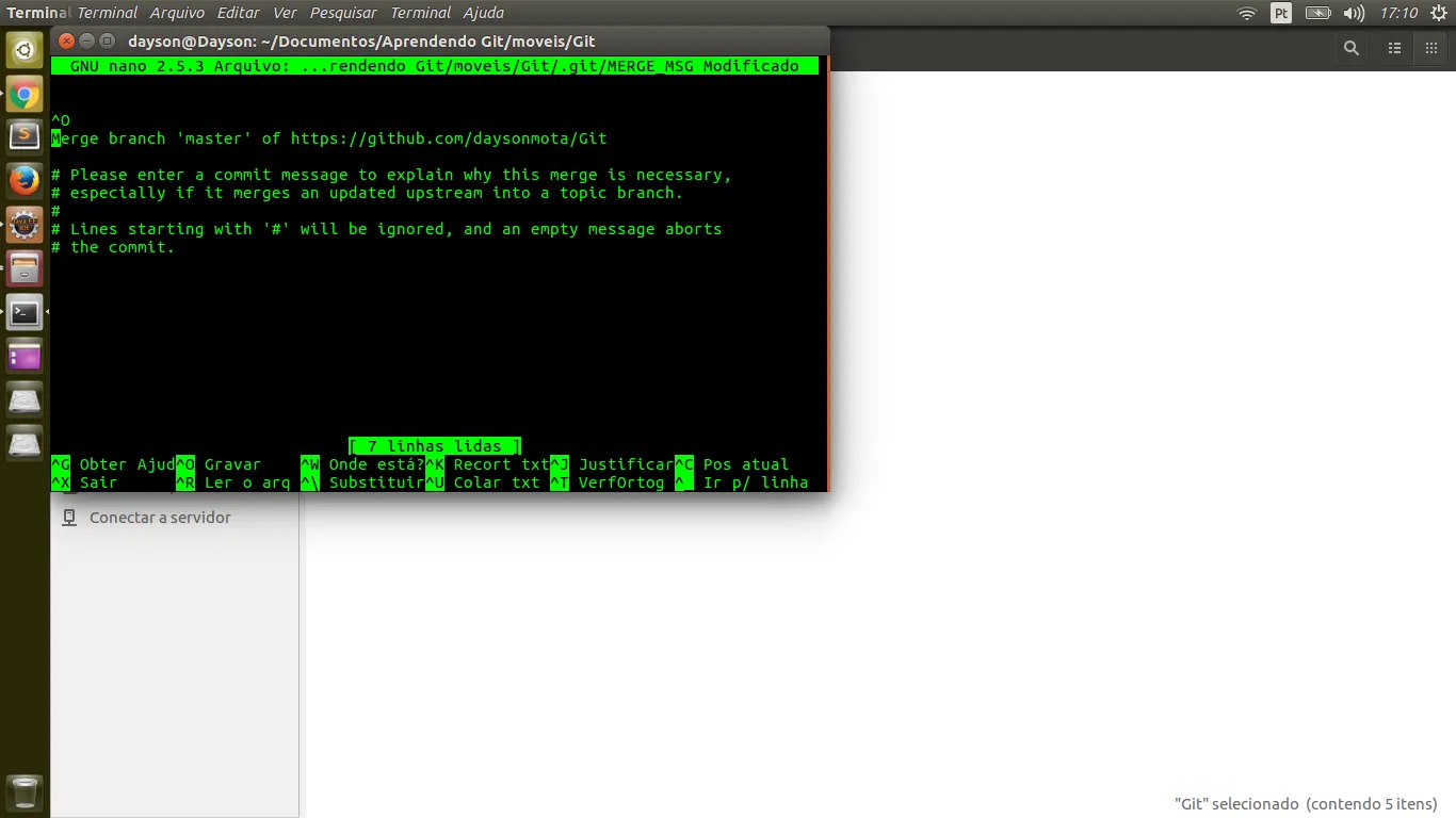 GUJ / Programação / Topico duvidaGit 21 de setembro de 2017 0 respostas git Dayson_Rodrigues 21 de setembro de 2017 Dentro do meu repositorio eu clonei meu repositorio do GitHub. Após entrei nele e fiz uma alteração em um arquivo por exemplo. Depois eu fiz: git push origin master e caiu nesta tela o que fazer? Captura de tela de 2017-09-21 17-10-41.png1366×768 85.9 KB Alura Desenvolvimento Back-End Java Sua Carreira em desenvolvimento back-end Java: dos fundamentos à arquitetura de sistemas... Criado 21 de setembro de 2017 Respostas 0 Participantes 1 Topicos relacionados Ler 10 números e dizer o maior e o menor Resolvido 36 respostas [RESOLVIDO] Erro fuso horario mysql Resolvido 6 respostas Documentação java em português 9 respostas Qual a diferença entre C , C++ , C# 2 respostas [Resolvido] PKIX path building failed: sun.security.provider.certpath.SunCertPathBuilderException: unable to find valid certification path to requested target 1 respostas Alura O que são algoritmos e lógica de programação e como aprender? Entenda o que são algoritmos e lógica de programação e qual é a importância desses conceitos para começar a programar Casa do Codigo Desbravando SOLID: Praticas avancadas para codigos de... Por Alexandre Aquiles — Casa do Codigo