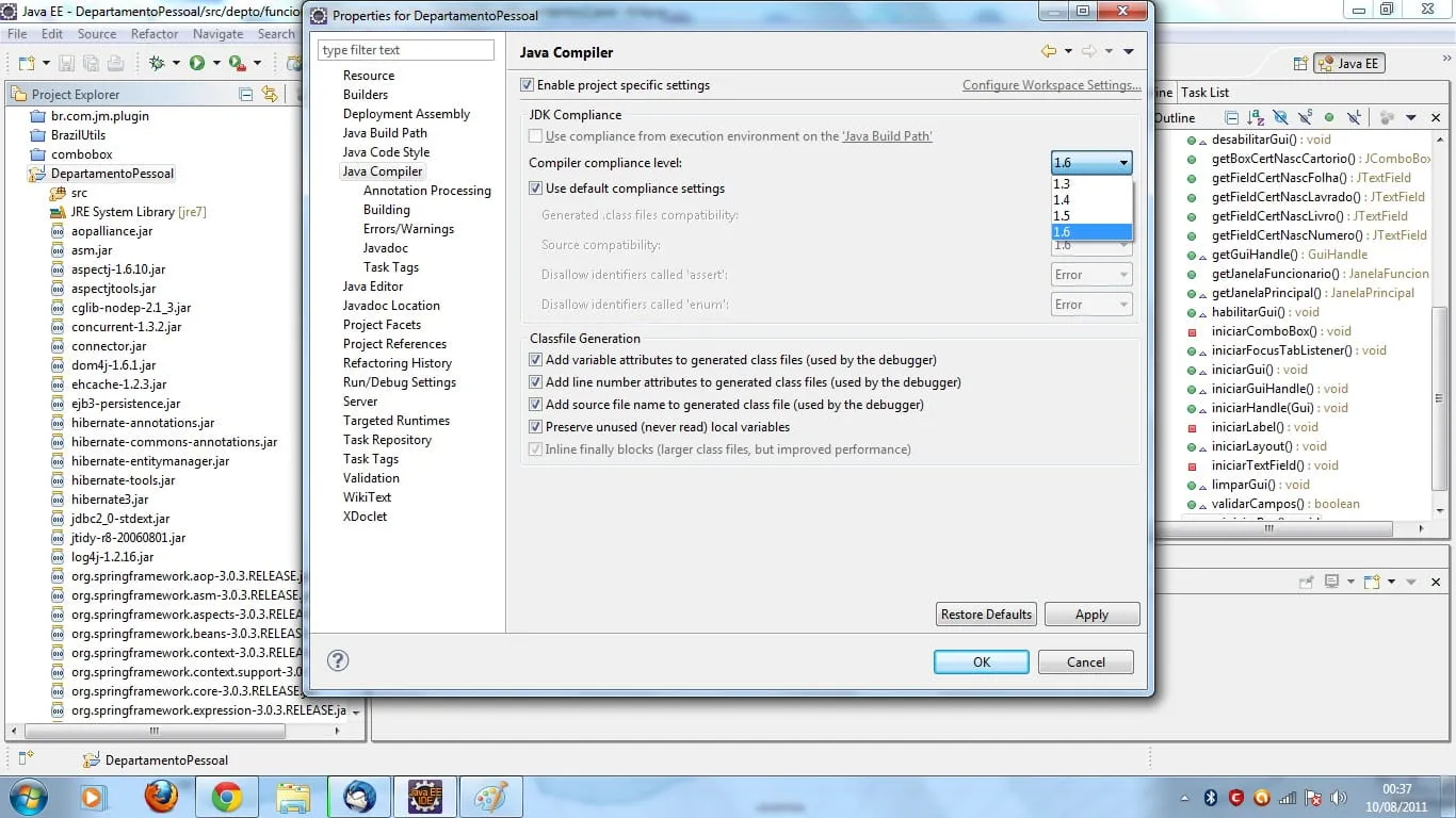 Eclipse Indigo como configuro um projeto para compilar com java 7?