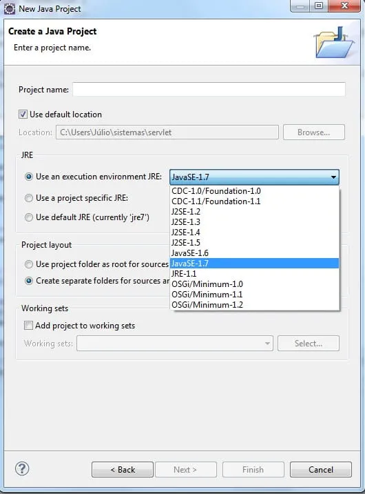 Lembrando que a versão do eclipse Indigo que roda o Java 7.
