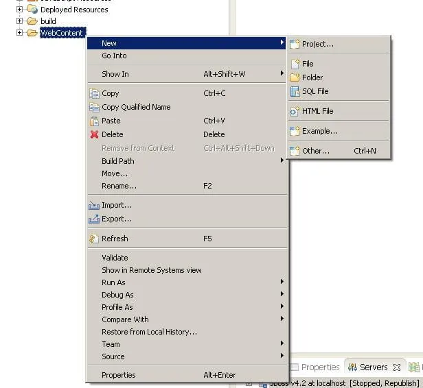 Tenho meu projeto ( Dynamic Web Project) e a opção não aparece… e se eu usar o Indigo e criar a página JSP, no Juno ele não reconhece também…