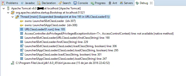 Baixei o JDK6, Eclipse Mars1, Ant, Maven e o MySql que são os requisitos do projeto, todos já configurados, o projeto está rodando normalmente mas ao tentar iniciar o tomcat em modo debug o eclipse acusa a falta de alguma biblioteca, já tentei revisar toda a documentação e não achei nada que me ajudasse resolver.