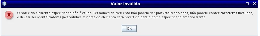 Estou tento problema ao adicionar atributos no editor de UML do netbeans pois fala que o nome do elemento é inválido, pois não pode ser palavras reservadas.