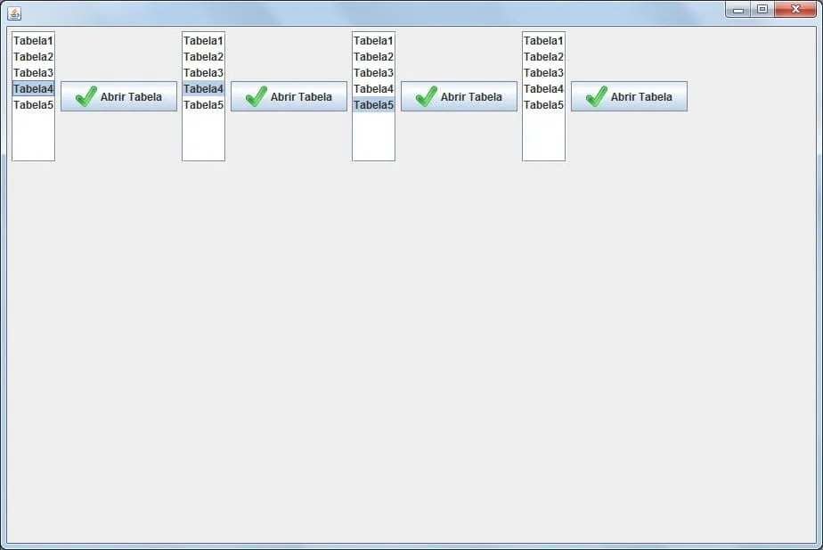 packageView;importjava.awt.Container;importjava.awt.FlowLayout;importjava.awt.event.ActionEvent;importjava.awt.event.ActionListener;importjava.io.File;importjava.util.ArrayList;importjavax.swing.ImageIcon;importjavax.swing.JButton;importjavax.swing.JFileChooser;importjavax.swing.JFrame;importjavax.swing.JOptionPane;importjavax.swing.JScrollPane;publicclassBotoesextendsJFrameimplementsActionListener{privateJButtonbotaoAbrirCSV,botaoSalvarCSV,botaoFechar,botaoImportarTabelaBanco,botaoAdd,botaoDelete,botaoDaJlist;privatestaticInterfaceinterfaceGrafica;privateListaGraficaminhaLista;privateContainerPopUp;publicArrayList<JButton>listaDeBotoes(){ArrayList<JButton>botoes=newArrayList<JButton>();botaoAbrirCSV=newJButton();botaoSalvarCSV=newJButton();botaoFechar=newJButton();botaoImportarTabelaBanco=newJButton();ImageIconicone1=newImageIcon(getClass().getResource("Icones/abrir.png"));botaoAbrirCSV.setIcon(icone1);botaoAbrirCSV.setText("Abrir um arquivo CSV");ImageIconicone2=newImageIcon(getClass().getResource("Icones/salvar.png"));botaoSalvarCSV.setIcon(icone2);botaoSalvarCSV.setText("Salvar o arquivo CSV");ImageIconicone3=newImageIcon(getClass().getResource("Icones/fechar.png"));botaoFechar.setIcon(icone3);botaoFechar.setText("Fechar Aplicação");ImageIconicone4=newImageIcon(getClass().getResource("Icones/abrirBanco.png"));botaoImportarTabelaBanco.setIcon(icone4);botaoImportarTabelaBanco.setText("Abrir tabela do banco");botoes.add(botaoAbrirCSV);botoes.add(botaoSalvarCSV);botoes.add(botaoImportarTabelaBanco);botoes.add(botaoFechar);botaoAbrirCSV.addActionListener(this);botaoSalvarCSV.addActionListener(this);botaoFechar.addActionListener(this);botaoImportarTabelaBanco.addActionListener(this);returnbotoes;}publicJButtonbotaoADD(){botaoAdd=newJButton();botaoAdd.setText("Adicionar");botaoAdd.addActionListener(this);ImageIconicone=newImageIcon(getClass().getResource("Icones/adicionar.png"));botaoAdd.setIcon(icone);botaoAdd.setText("Adicionar linha");returnbotaoAdd;}publicJButtonbotaoDelete(){botaoDelete=newJButton();botaoDelete.setText("Delete");botaoDelete.addActionListener(this);ImageIconicone=newImageIcon(getClass().getResource("Icones/excluir.png"));botaoDelete.setIcon(icone);botaoDelete.setText("Excluir linha");returnbotaoDelete;}publicJButtonbotaoDaJList(){botaoDaJlist=newJButton();botaoDaJlist.addActionListener(this);ImageIconicone=newImageIcon(getClass().getResource("Icones/escolher.png"));botaoDaJlist.setIcon(icone);botaoDaJlist.setText("Abrir Tabela");returnbotaoDaJlist;}publicvoidacaoBotaoImportarDoBanco(){minhaLista=newListaGrafica();minhaLista.setDefaultCloseOperation(JFrame.EXIT_ON_CLOSE);PopUp=getContentPane();PopUp.setLayout(newFlowLayout(FlowLayout.LEFT));PopUp.add(newJScrollPane(minhaLista.mostraLista()));PopUp.add(botaoDaJList());PopUp.setVisible(true);this.setVisible(true);this.setName("Escolher Tabela do banco");this.setSize(300,200);}publicvoidacaobotaoAbrirCSV(){JFileChooserescolhedorDeArquivo=newJFileChooser();StringcaminhoProdutoSelecionado=newString();try{escolhedorDeArquivo.setDialogTitle("Procurar o seu arquivo CSV");escolhedorDeArquivo.showOpenDialog(escolhedorDeArquivo);ExtensionFileFilterfilter=newExtensionFileFilter("csv",newString[]{"csv"});escolhedorDeArquivo.setFileFilter((javax.swing.filechooser.FileFilter)filter);escolhedorDeArquivo.setFileFilter(null);caminhoProdutoSelecionado=escolhedorDeArquivo.getSelectedFile().getPath();}catch(NullPointerExceptione){JOptionPane.showMessageDialog(null,"Escolha o arquivo que deseja abrir!");}catch(Exceptione){JOptionPane.showMessageDialog(null,"O Arquivo deve possuir a extensão CSV!");}System.out.println(caminhoProdutoSelecionado);}publicvoidacaobotaoSalvarCSV(){Filecaminho;JFileChooserfileChooser=newJFileChooser();fileChooser.setSelectedFile(newFile("teste.csv"));if(fileChooser.showSaveDialog(this)!=JFileChooser.CANCEL_OPTION){caminho=fileChooser.getSelectedFile();}else{caminho=null;}StringURL=caminho.toString();System.out.println(URL);}//fim do metodopublicvoidacaobotaoFechar(){System.exit(0);}publicvoidacaoBotaoAdd(){interfaceGrafica.getMinhaTabela().adicionaLinha();}publicvoidacaoBotaoDelete(){interfaceGrafica.getMinhaTabela().deletaLinha();}publicvoidacaoBotaoDaJList(){System.out.println(minhaLista.retornaIndiceSelecionado());minhaLista=null;PopUp=null;this.dispose();}publicvoidactionPerformed(ActionEventevt){if(evt.getSource()==this.botaoAbrirCSV){acaobotaoAbrirCSV();}elseif(evt.getSource()==this.botaoFechar){acaobotaoFechar();}elseif(evt.getSource()==this.botaoAdd){acaoBotaoAdd();}elseif(evt.getSource()==this.botaoDelete){acaoBotaoDelete();}elseif(evt.getSource()==this.botaoSalvarCSV){acaobotaoSalvarCSV();}elseif(evt.getSource()==this.botaoImportarTabelaBanco){acaoBotaoImportarDoBanco();}elseif(evt.getSource()==this.botaoDaJlist){acaoBotaoDaJList();}}publicstaticvoidmain(String[]args){interfaceGrafica=newInterface();interfaceGrafica.criaInterface();}}
