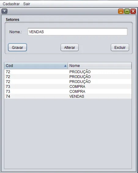 Boa noite a todos, Estou passando por um problema a um certo tempo então decidi pedir ajuda de pessoas mais experientes, Tenho função void chamada carregaTabela, e inicializo essa função junto com a InitComponentes, ao fazer uma ação para abrir um form chamado cadSetores logo tenho o erro descrito no titulo do tópico java.lang.NullPointerException, alguém pode ajudar?