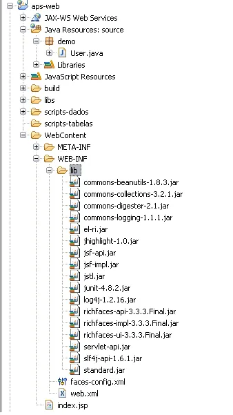 Ao tentar acessar a aplicação através da URL: http://localhost:8080/aps-web/index.jsf, o erro em questão é disparado.