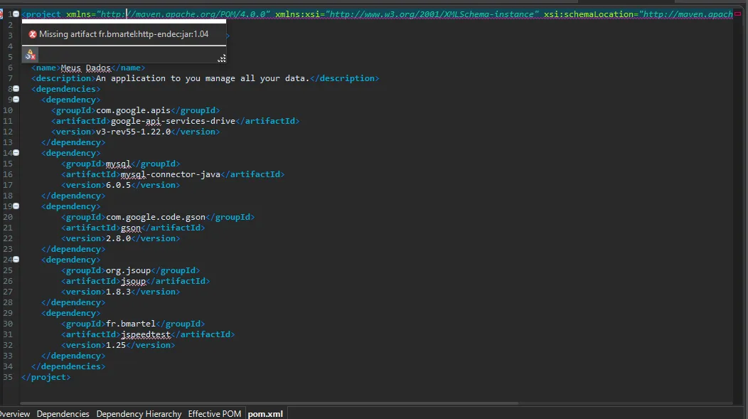 Olá. Eu estava buscando por uma biblioteca para saber a velocidade da internet do usuário, então eu encontrei essa, também notei que ela está disponível no Maven, então resolvi testar no meu projeto, porém, ao adiciona-la no pom.xml eu estou recebendo esta mensagem do Eclipse: