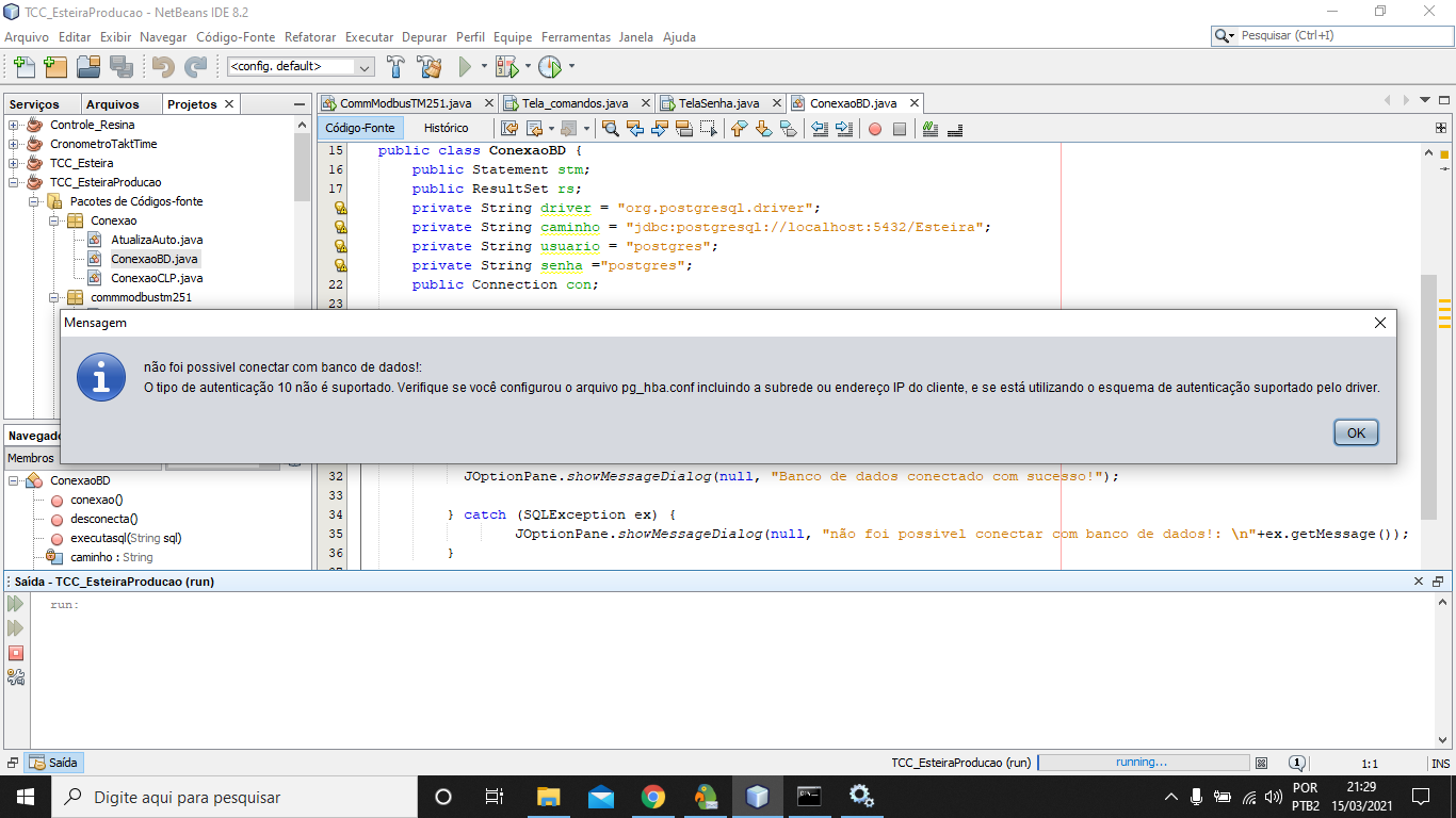 JOptionPane.showMessageDialog(null, "não foi possivel conectar com banco de dados!: \n"+ex.getMessage());