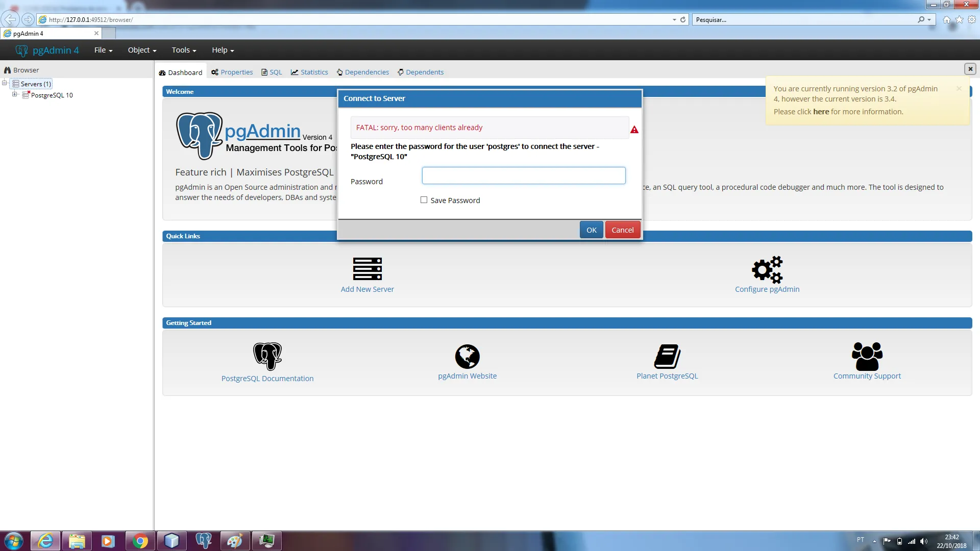 Alguém aqui usa o PostgreSQL. Eu estava usando tranquilo, quando do nada não conectava mais e aparece esse erro que segue abaixo: