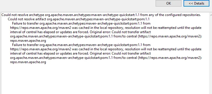Ao tentar criar um novo projeto maven no eclipse, ele me apresenta o erro: