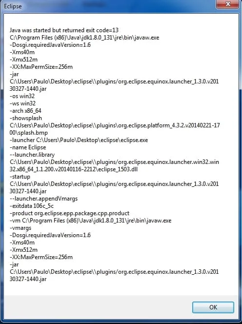 Hoje eu baixei o ide do eclipse c++, só que ele está dando um erro ao iniciar.