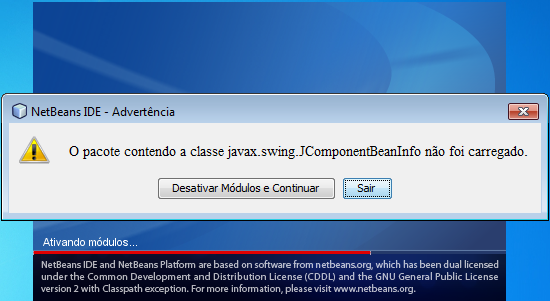 O pacote com a classe javax.Swing.JComponentBeanInfo, deve esta danificado você já tentou restaurar ou re-instalar?