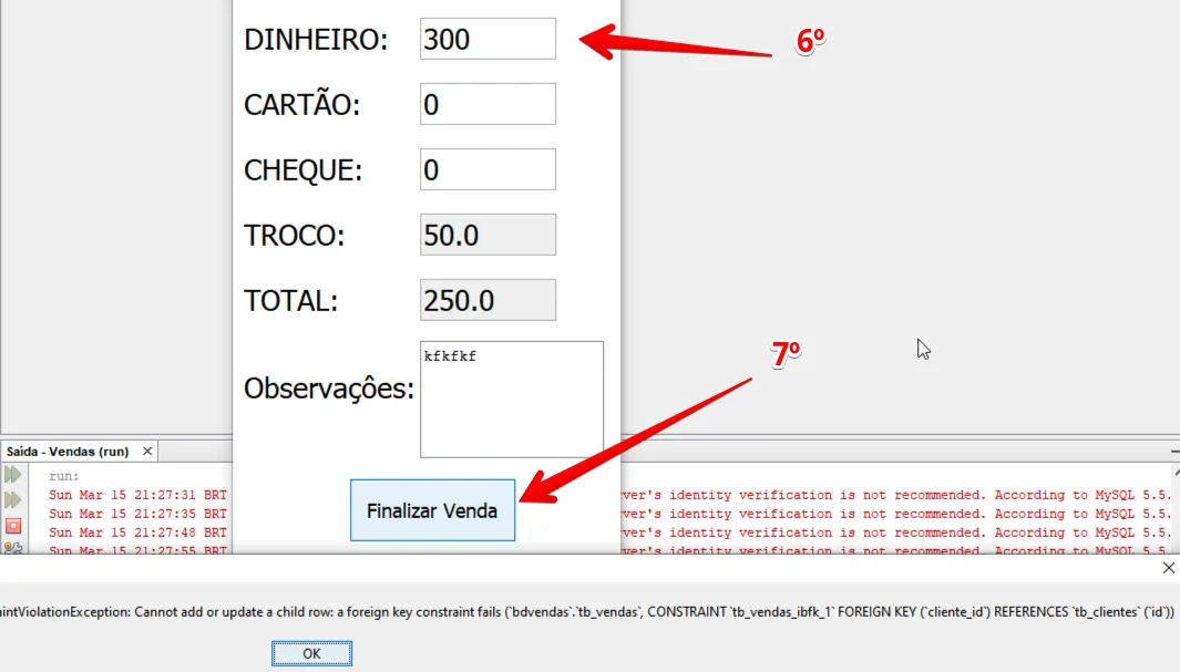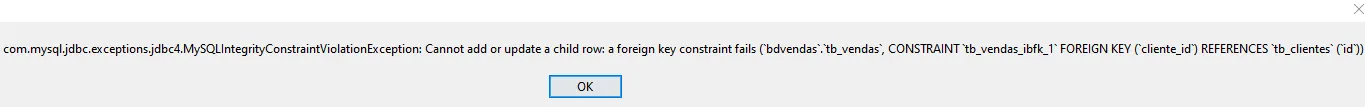 Estou recebendo essa mensagem de erro, aparentemente tem hora que funiona ao inserir uma venda