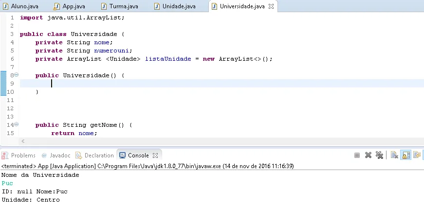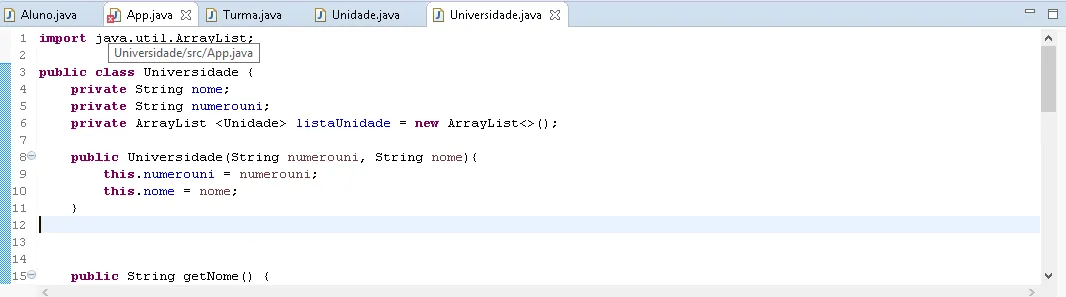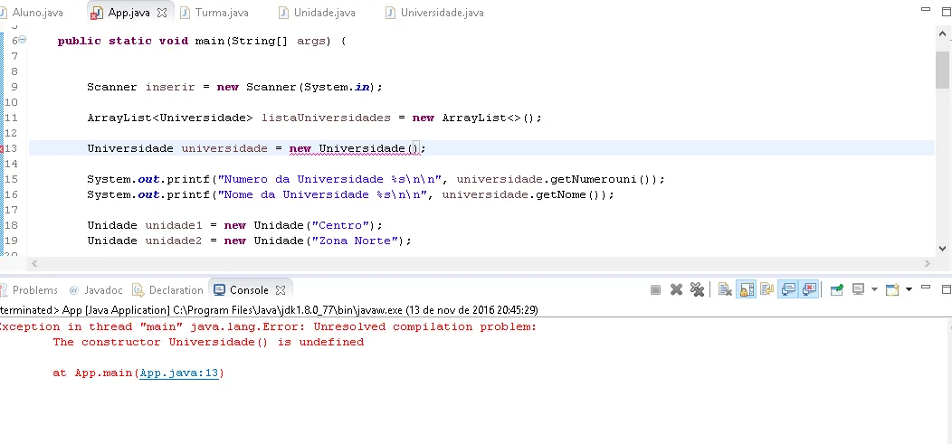 Pois isso new Universidade(); não existe. Existe recebendo 2 parametros.