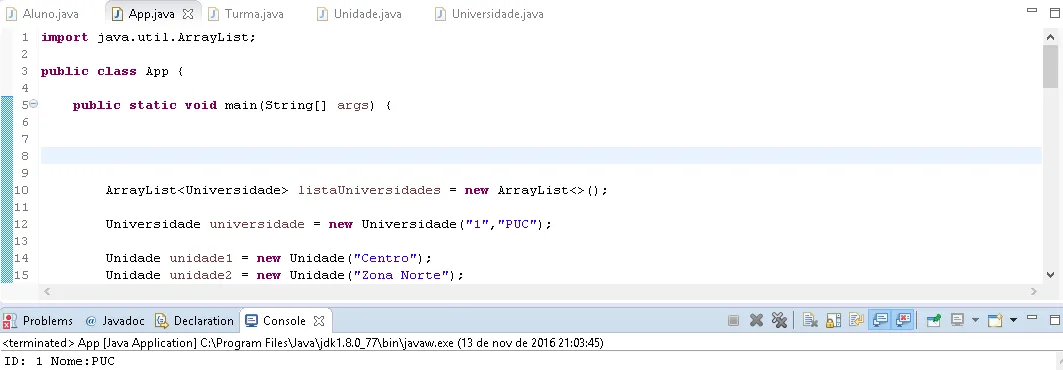 Universidade u=new Universidade(p1, p2);