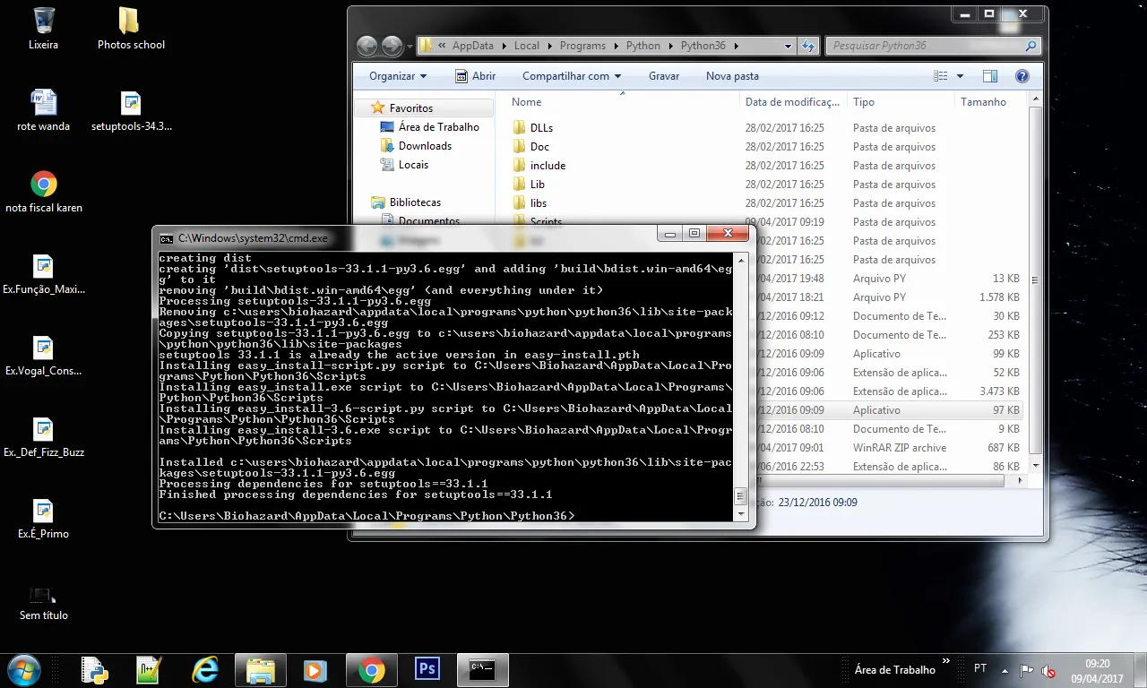 Os arquivos get-pip.py e ez_setup.py estão no diretório … \Python36 ?