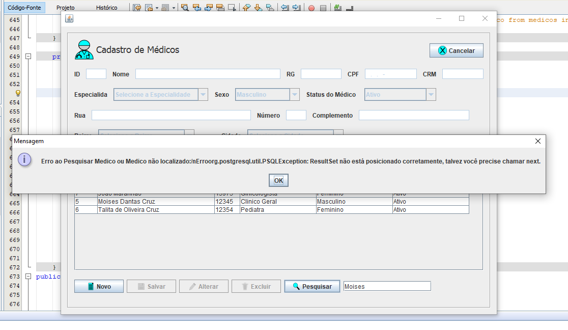 Estou tentando pesquisar médicos na tabela de médicos, tenho 4 médicos cadastrados consigo pesquisar 3 deles, mais tem o médico Moises que apresenta este erro: