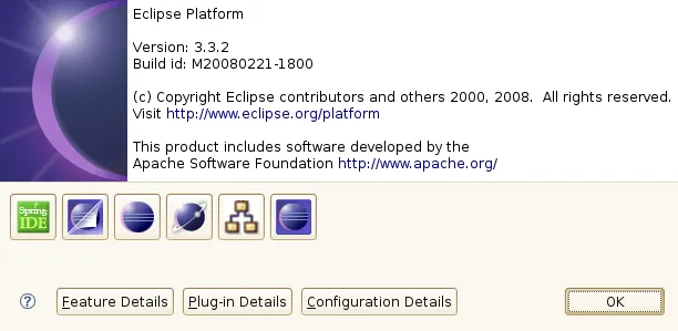 Está aí a janela de erro gerada e o about do eclipse: