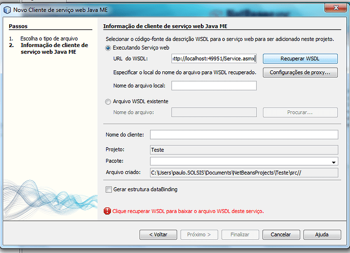 ‘service.asmx.wsdl não está compatível com especificação de serviços web java ME (JSR-172)’
