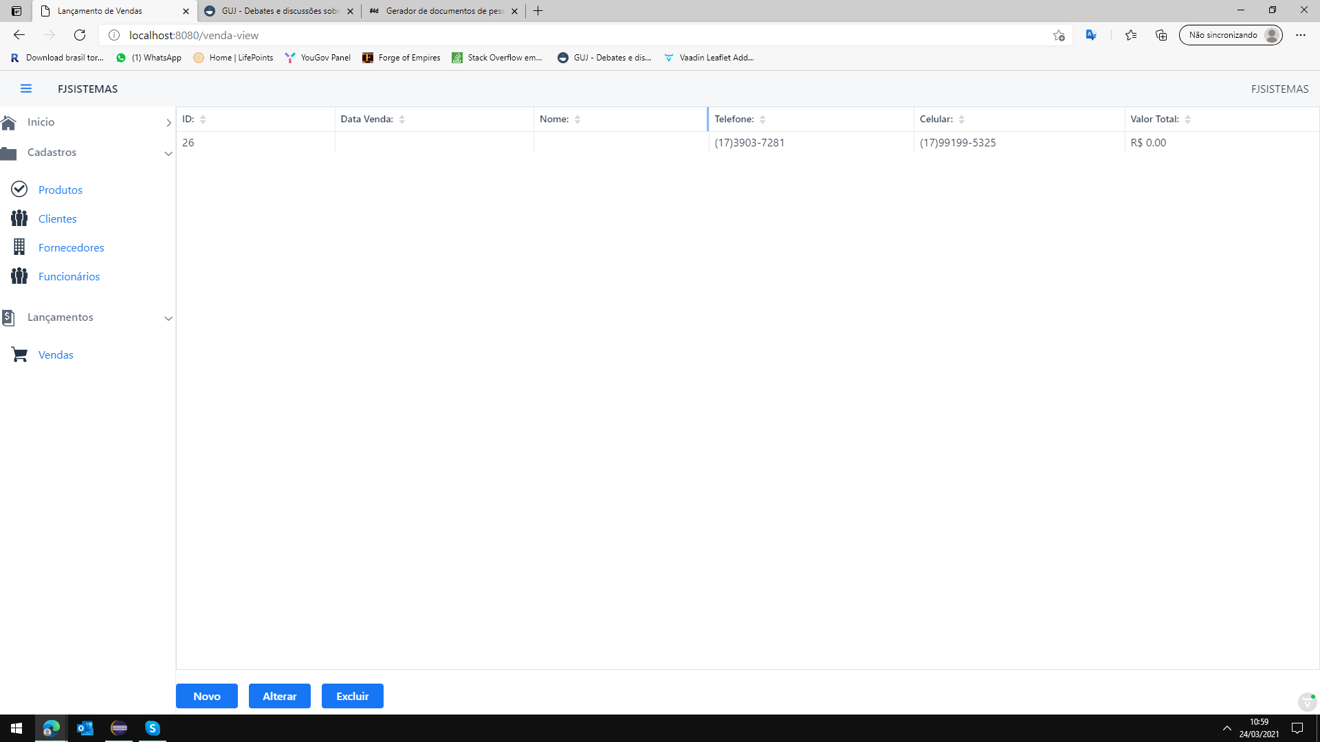 Veja que os campos Data Venda e Nome estão em branco e o campo Valor Total está R$ 0,00…demais campos estão ok
