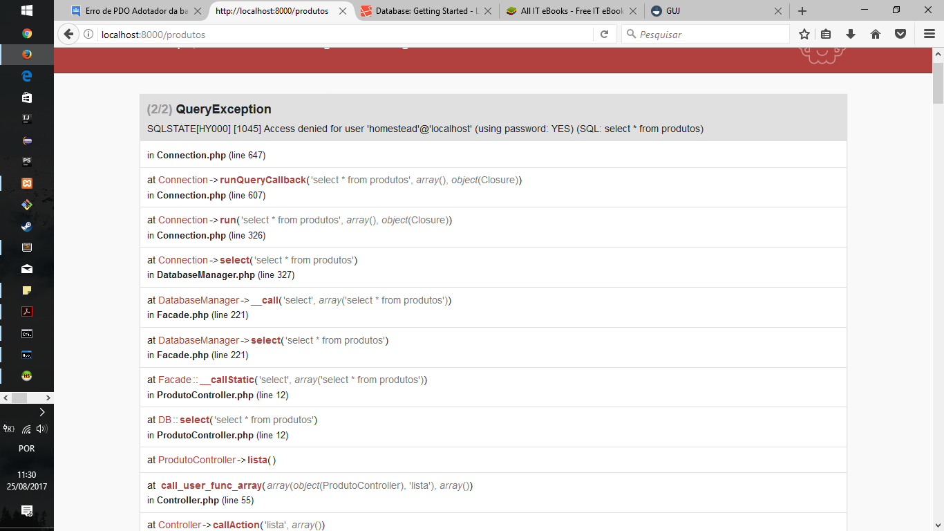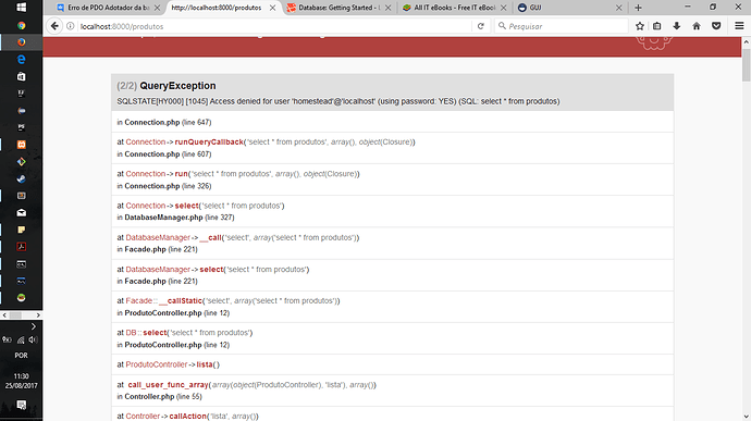 Estou com um problema em rodar uma simples query utilzando o laravel, estou aprendendo este framework.