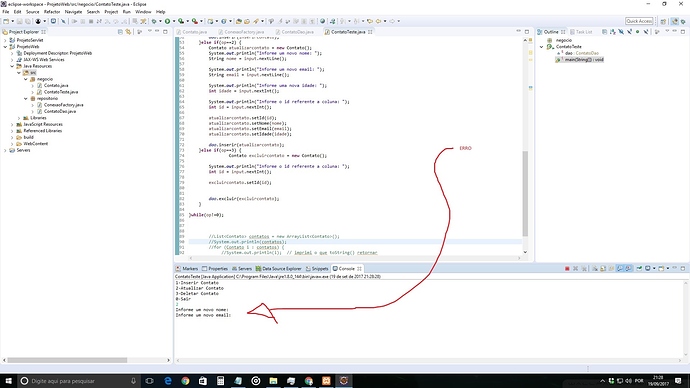 Alguém sabe o pq de não rodar um input por vez e sim os dois ao mesmo tempo? Isso me impede de inserir o primeiro item, no caso “nome”;
