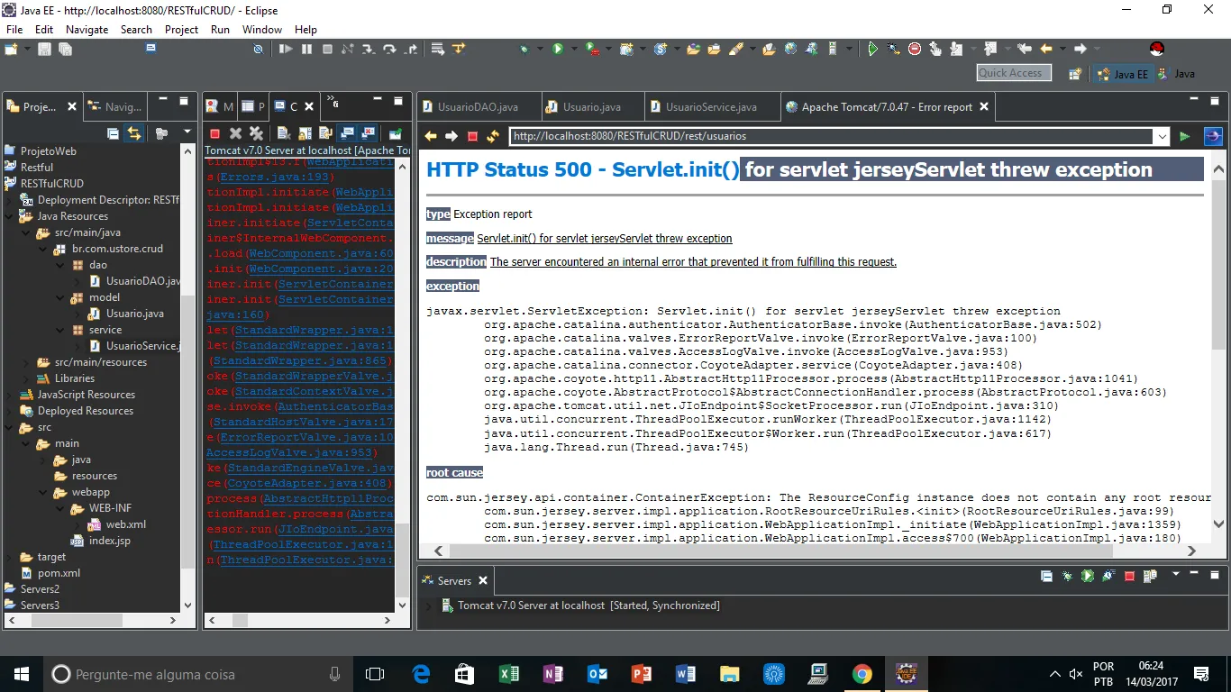 INFORMAÇÕES: Marking servlet jerseyServlet as unavailable