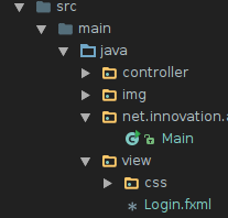 A Main está dentro da Controller. Basta acessar a View então, que está uma pasta acima (view e controller estão dentro da src, a Main estã dentro da controller e o fxml dentro da view)