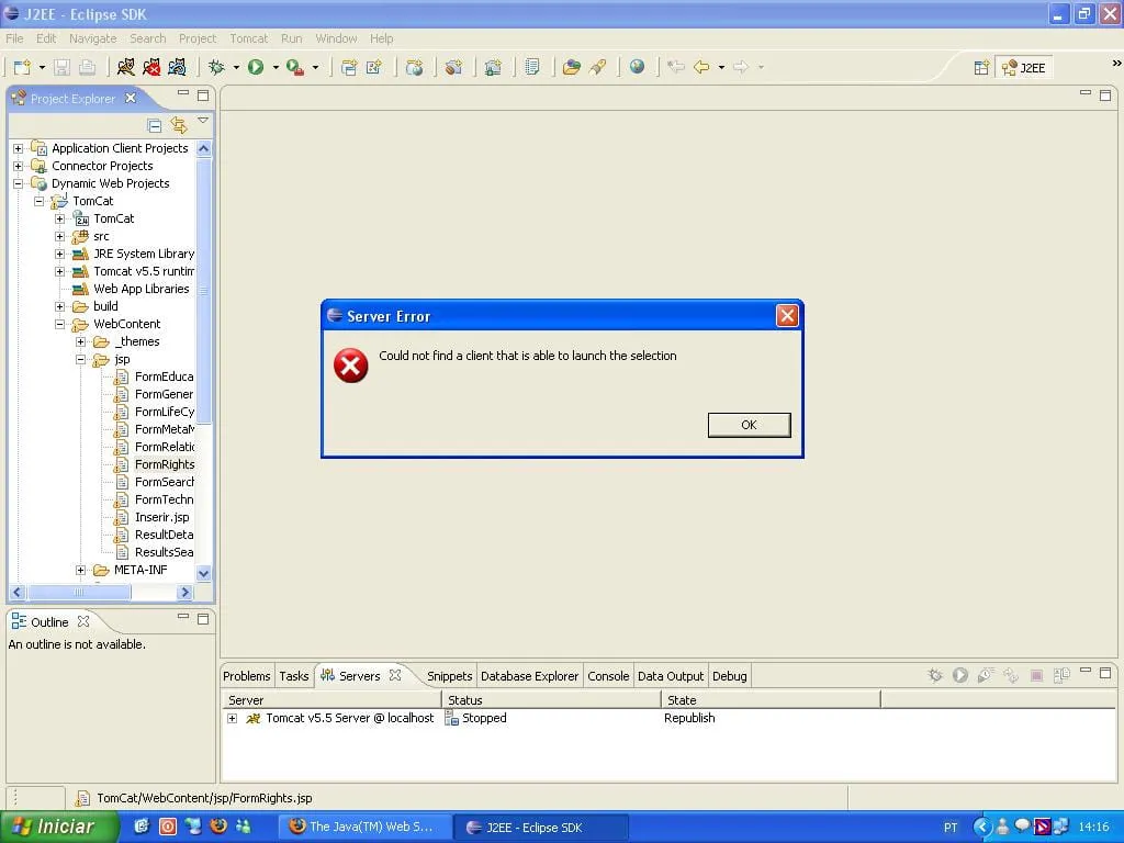 ao excluir um determinado projeto, e depois importar um outro o eclipse passou a mostrar o seguinte erro sempre que tento rodar uma determinada apllicação no tomcat apartir do eclipse utilizando WTP, o que pode ser alguém