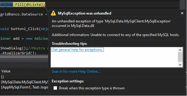 Eu fiz um projeto com conexão ao banco de dados mysql no visual studio, então eu instalei as conexões necessárias com o visual studio, porém eu só consigo fazer ele funcionar com o wampo aberto, se ele estiver fechado da erro em um comando ao banco de dados, queria saber como eu faço para ele funcionar sem precisar do wamp aberto no PC. Tem umas imagens em anexo para exemplificar melhor o meu problema