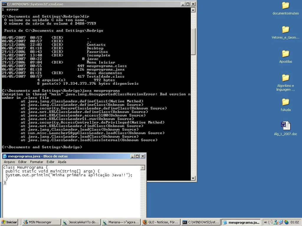 :arrow: Talvez você tenha compilado sua classe numa versão de Java, e esteja tentando executar em outra. Verifique seu path para saber qual Java está sendo executado