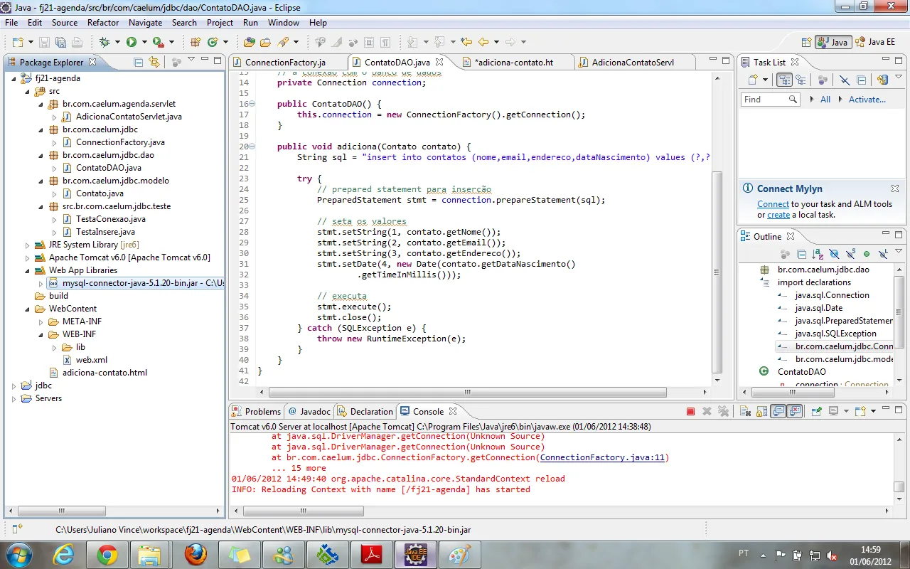 br.com.caelum.jdbc.dao.ContatoDAO.<init>(ContatoDAO.java:17)
