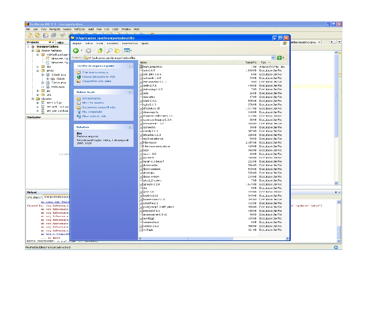 Esta aplicação esta no meu diretorio D:\aplicacoes java\transportadora\src