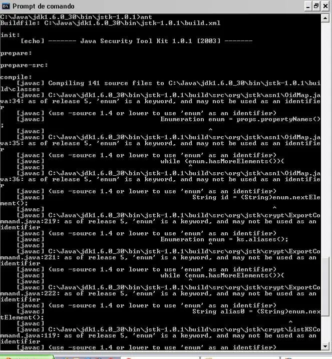 Sim essa parte eu cheguei a ver em outros forums mas como eu faria para trocar esse identificador? estou apenas rodando o comando ant do Apache Ant. Isso então seria um erro do próprio comando dele?