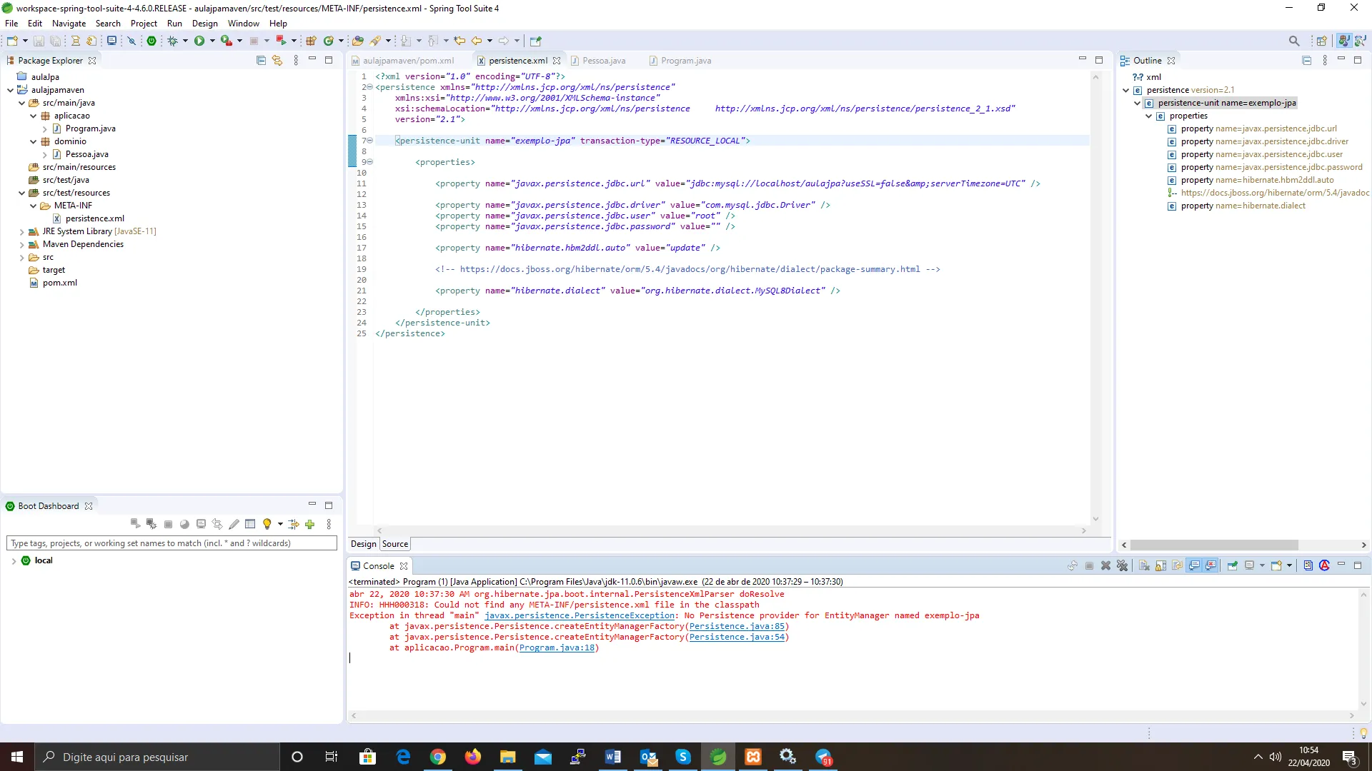 Comecei a estudar JPA / Hibernate e no primeiro exemplo que vou fazer já me retorna o seguinte erro: